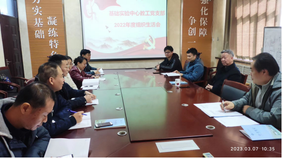 关于召开2022年度党支部组织生活会和开展民主评议党员、党支部书记抓党建述职评议、党支部评星定级工作的通知》的安排,3月7日,基础实验中心教工党支部召开“凝心聚力,统一思想,深入学习贯彻党的二十大精神”专题组织生活会,并开展了民主评议党员工作。会议由党支部书记崔科同志主持,院长吕宪俊同志对会议进行了指导和点评,91pro