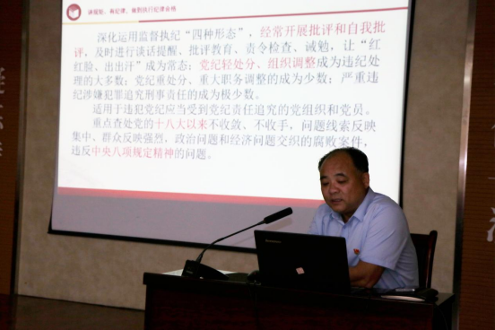 党委书记窦存增为毕业生党员讲专题党课。窦存增以《学条例、守党纪、知敬畏、做先锋、让遵规守纪成为生活习惯》为题,从党员的“底线”、“红线”、“高压线”引入,围绕《中国共产党纪律处分条例》展开解读,让大家深刻认识到违反党纪国法的严重后果。随后结合毕业生党员今后可能会面临的具体情况进行分析,警醒大家在日常工作和生活中要严格遵守党的纪律和规矩。窦存增激励毕业生党员时刻铭记自己的身份,牢记入党初心和使命,不断加强党性修养,工作中勇挑重担,处处发挥党员先锋模范作用。会后全体毕业生党员在党纪学习教育宣传条幅上签字,做出一份郑重承诺,将党纪牢记心间。