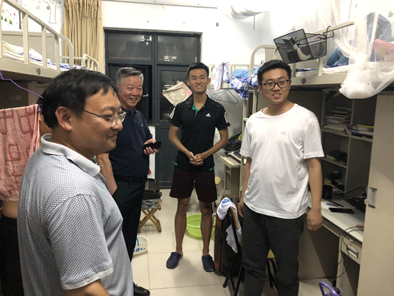 领导老师走入每一间毕业生宿舍,与毕业生交流谈心,热情询问学生的离校安排和遇到的问题,为毕业生答疑解惑。对于即将就业工作的同学,领导老师们叮嘱他们要俯下身子做事,从点滴做起,从基层做起,一步一个脚印,踏实前进,实现人生理想,;对于继续深造的同学,鼓励他们要继续秉承“惟真求新”的科大校训,勤奋学习,潜心钻研,提升知识储备,提高综合素质。领导老师们表示,科大是大家永远的家,永远的坚强后盾,希望各位同学无论走到哪里,都能心怀母校,关注母校,欢迎大家常回家看看。