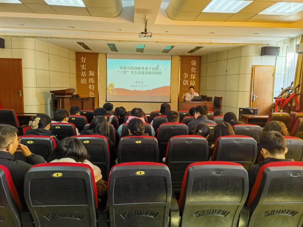 李老师重点讲解科教兴国战略背景下高校“三型”党支部建设要求:高校需要着眼于科教兴国战略的基本内容,准确把握“三型”党组织的逻辑关系,学习型、服务型和创新型党组织存在辩证统一的关系,三者有机互补又互相独立,学习型党支部建设是基础、是前提。在建设“三型”党组织时,习近平总书记提出以学习型为首位,实现崇尚学习、善于学习和勤于学习。高校则应以建设党的组织文化为出发点和落脚点,打造学习型党支部,凸显团队学习的重要意义,保障全员学习的系统性、理论性、思想性和实效性,在科学理论的指导下落实教书育人工作。