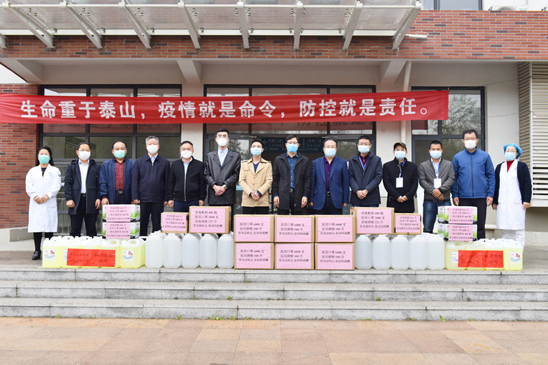 ,代表企业向学校捐赠防疫物资。校党委副书记尹华会见了付强一行并座谈交流。