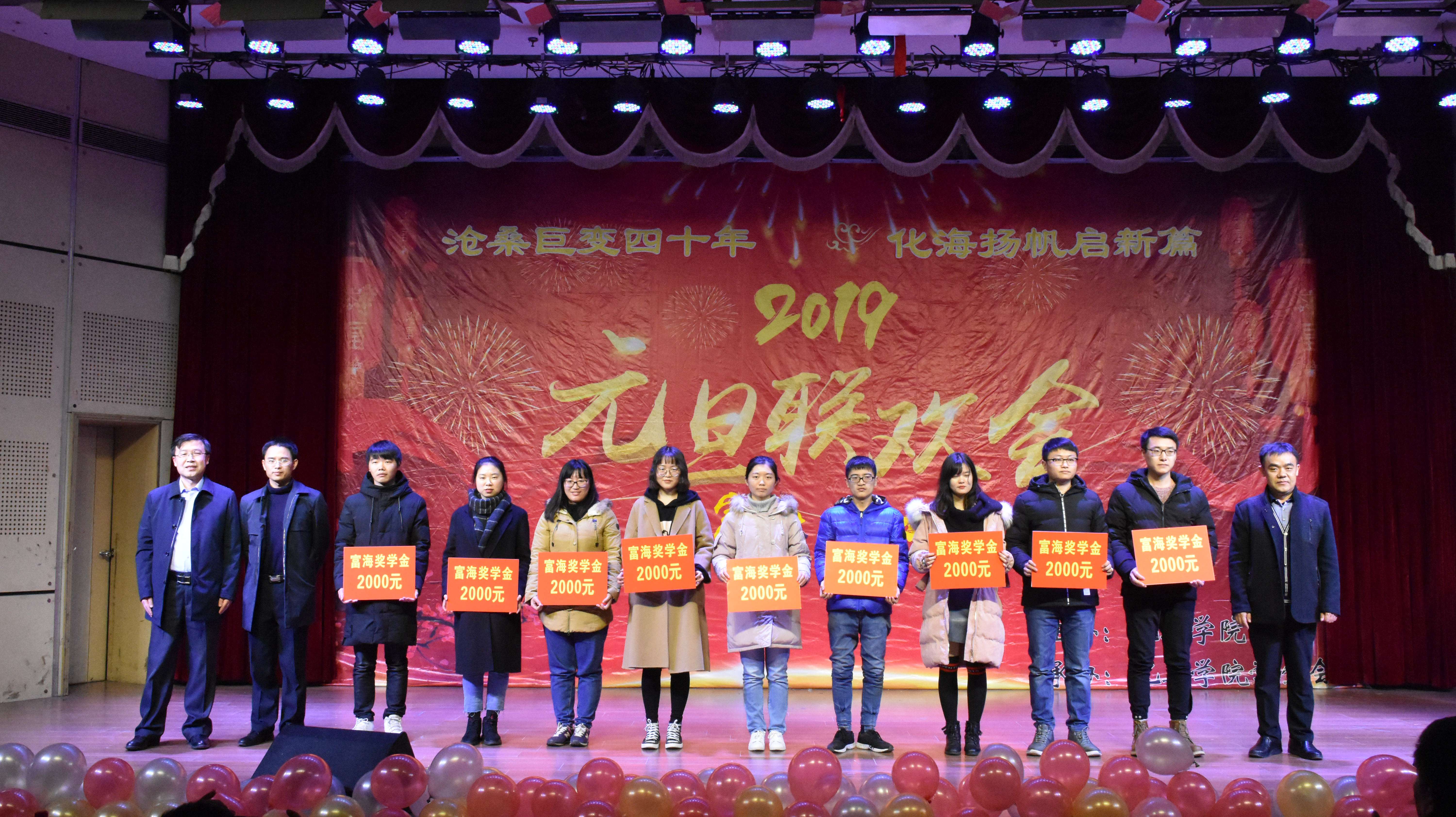 举办“沧海巨变四十年、化海扬帆启新篇”“富海之夜”2019年元旦联欢会。富海集团人力资源中心总经理郭元山、人事共享中心主任朱相滨、合作发展处处长吴正龙、学生工作处副处长卞西春、91pro