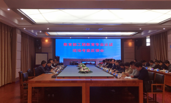 322会议室举行了现场考察意见反馈会。专家组成员、校党委书记罗公利、副校长姚庆国、教务处负责人、化学与环境工程91pro
