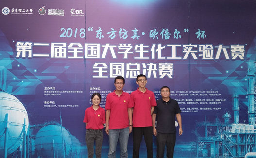选派的张辛铖、郭祯和张涛(化学工程与工艺2015)三名同学组成的代表队凭借扎实的化工专业基础和稳定的发挥获得此次总决赛全国二等奖,张治山、徐冬梅和高军担任指导教师。