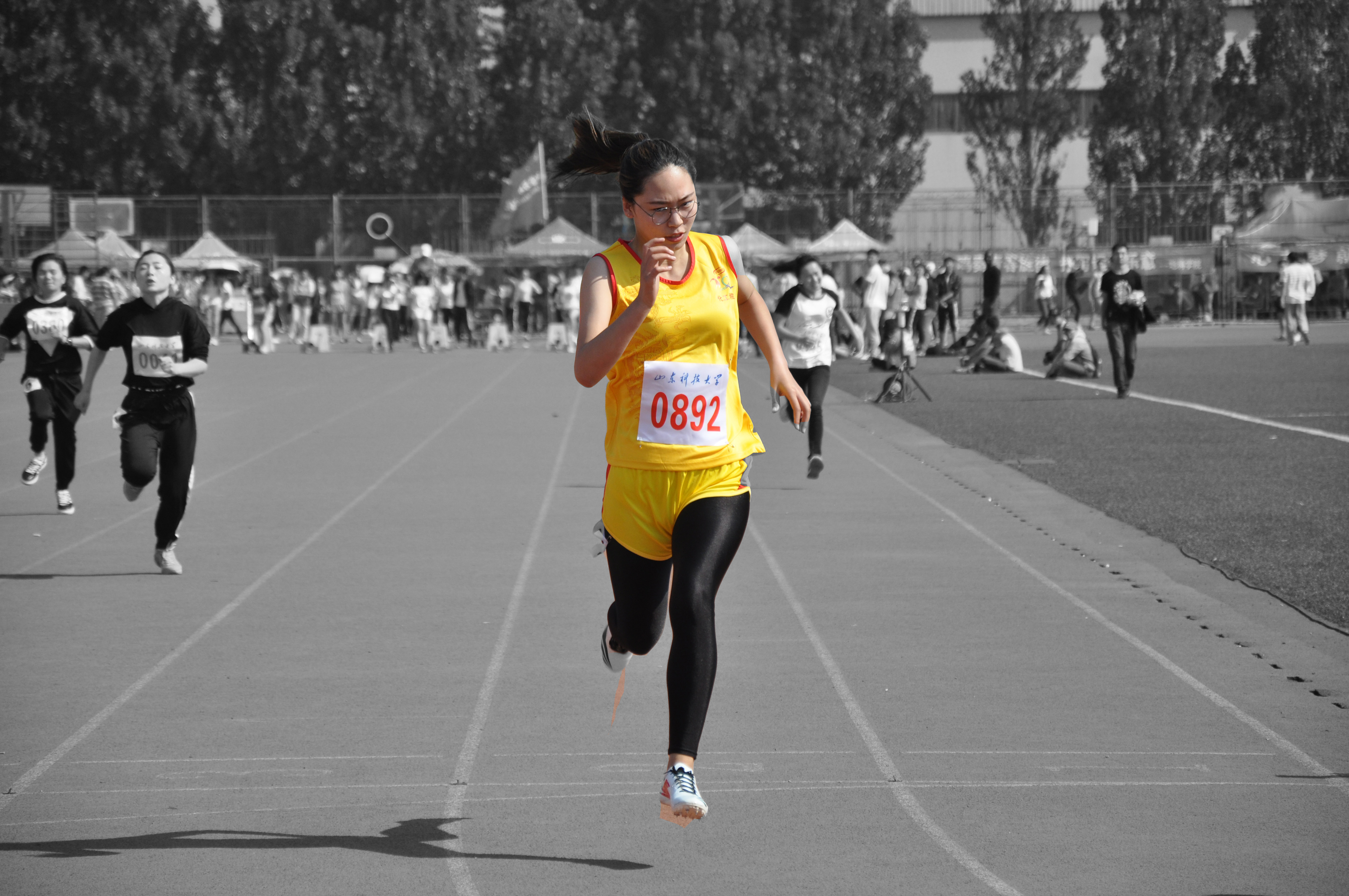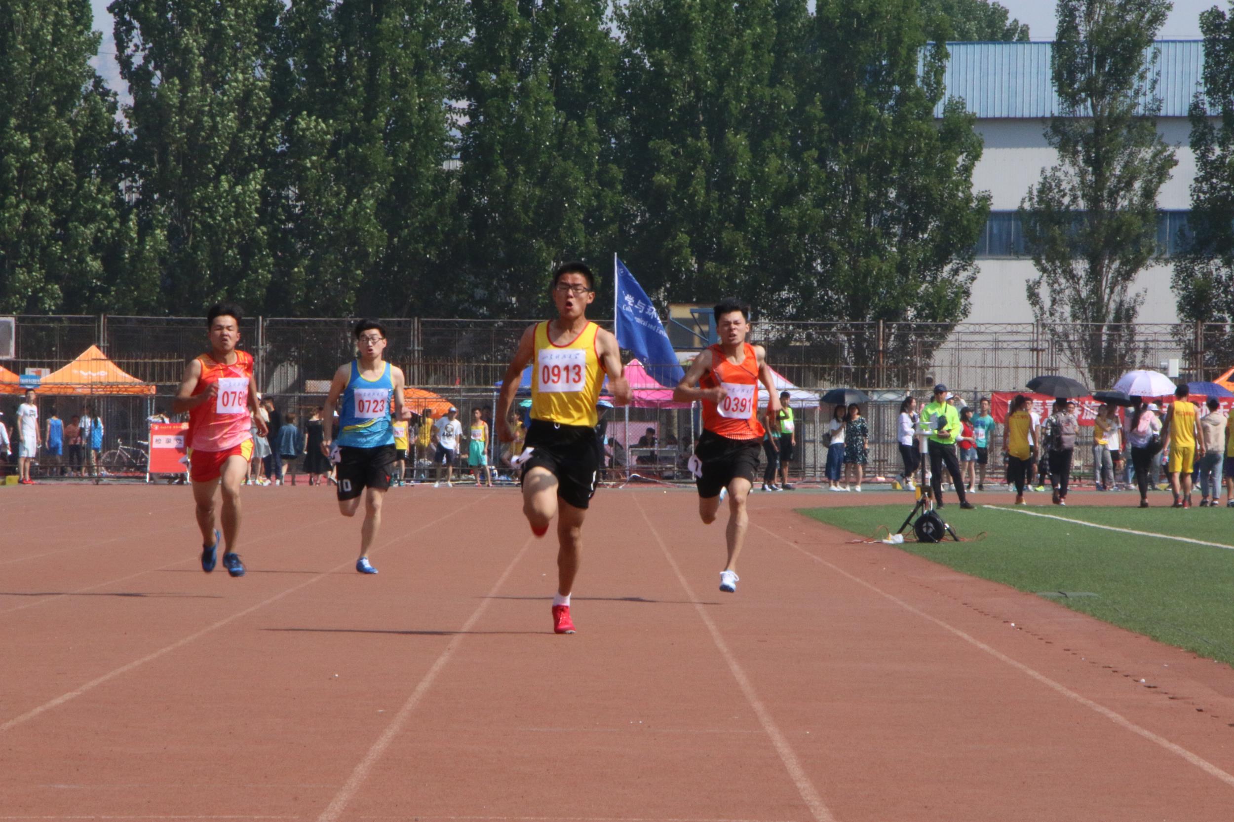 领导和团委老师、同学们一起为化工健儿们加油助威,炎炎烈日丝毫没有影响运动员们的发挥。在女子甲、乙组4×100米、女子甲、乙组4×400米比赛中,91pro健儿均以绝对优势战胜对手取得了比赛的胜利。在女子甲组800米比赛中,斩获1500米比赛冠军的张云萧依靠超群的实力成功问鼎,并以2分40秒10的成绩打破校运动会女子800米纪录,成为本次运动会上91pro唯一打破纪录的运动员。此外,2013级环境工程二班的郑艳飞在跳高、400米、4×400接力、4×100接力比赛中发挥出色,斩获四项冠军。比赛过程中,化工健儿频频传来捷报,现场观众情绪高涨,同学们将内心的喜悦与激动之情付诸于震耳的欢呼和呐喊,有的观众挥动手中的笔,为运动健儿们写下一篇篇赞歌。强烈的集体荣誉感深深感染了在场的每一个同学。