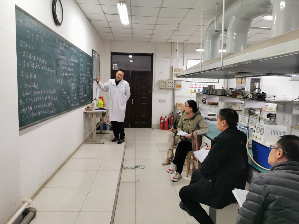 基础化学实验中心的老师们和督导一起担任评委,他们根据老师们申请的课程实验内容的不同,在不同的课程实验室组织了本次考核。本次申请实验课程新开课和开新课的5位老师,根据评委要求,分别进行了实验课程理论讲解和实验项目操作等2个环节的展示。经过四个小时的考核,经考核小组认定,17位教师全部考核合格,可以承担下学期的新课程。