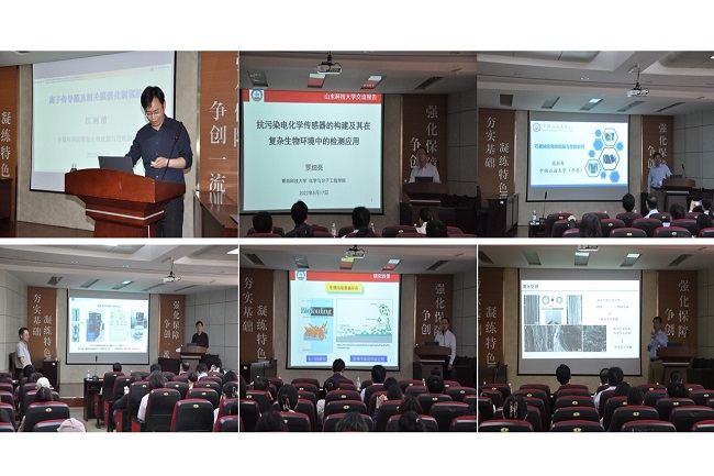 本次论坛邀请了中科院青岛生物能源与过程研究所,江河清研究员,博士生导师,做了“离子传导膜及相关制氢技术”的报告;青岛科技大学罗细亮教授,博士生导师,国家优秀青年科学基金获得者,作了“抗污染电化学传感器的构建及其在复杂生物环境中的检测应用”的报告;中国石油大学(华东)范壮军教授,博士生导师,科技部科技创新领军人才,教育部新世纪优秀人才,作了“石墨烯基材料的设计研究”的报告。