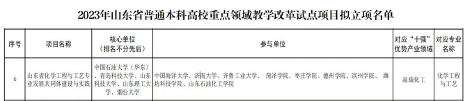 近日,山东省教育厅发布了《山东省教育厅关于组织开展2023年山东省普通本科高校重点领域教学改革试点项目建设工作的通知》(鲁教高函〔2023〕36号),其中,以我校为核心单位,依托化学工程与工艺专业(国家一流专业)申报的教学改革项目《山东省化学工程与工艺专业发展共同体建设与实践》获批2023年山东省普通本科高校重点领域教学改革试点项目(山东省“111计划”建设项目)。同时,91pro《化工原理》(课程负责人:徐冬梅)和《物理化学》(课程负责人:邵谦)两门课程入选2023年山东省普通本科高校重点领域教学改革试点项目—“山东省化学工程与工艺专业发展共同体建设与实践”专业核心建设课程。
