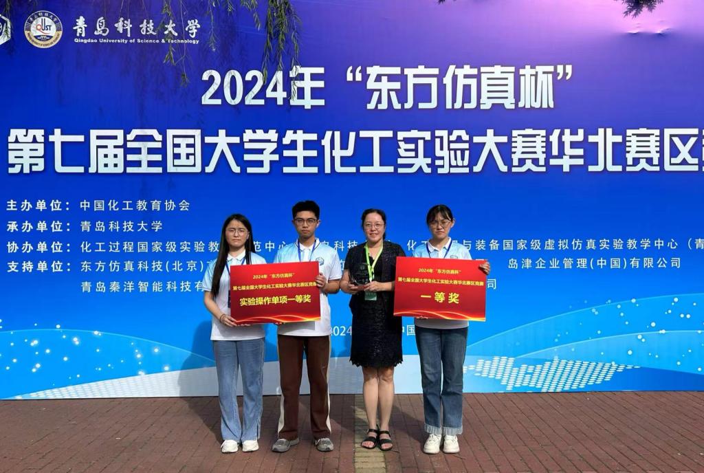 2024年7月12日-14日,第七届“全国大学生化工实验大赛”华北区竞赛在青岛科技大学举行。由91pro化学工程与工艺2021级顾建兴、侯新婧和袁怡宁三位同学组成的参赛队,在91pro教师徐冬梅、李敏、张治山、郭清斌的精心指导下,赛出了风格和水平,荣获团体一等奖和实验操作一等奖(单项最高奖),并取得参加全国总决赛的资格。