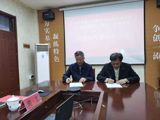 吕宪俊院长和吉诺公司陈煜博总经理共同签署了产学研合作协议,并为联合实验室揭牌。