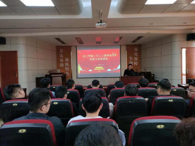 于J2报告厅举办2023届毕业生应征入伍宣讲会。会议邀请到学校武装部国防教育科主任于喆老师、2017级退役学长退役复学学生赵英琦担任主讲人,91pro