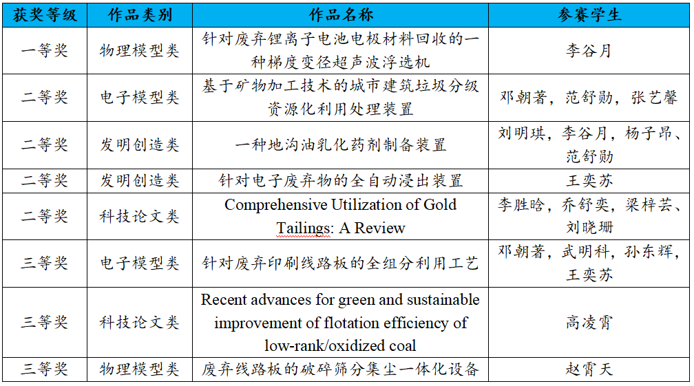 本届大赛由教育部高等学校矿业类专业教学指导委员会、中国高校矿物加工工程专业协同合作联盟主办,江西理工大学、福州大学联合承办共有来自全国30余所高校的1000余名师生参加参赛作品经过校内初评、专家网评、现场答辩等环节评选出各类奖项。