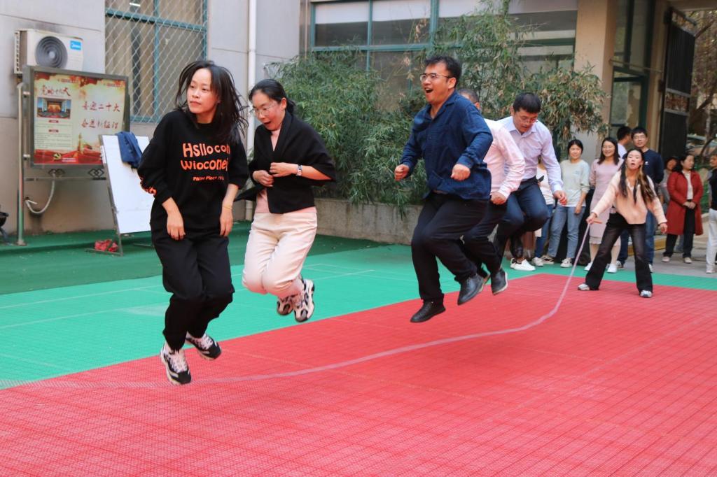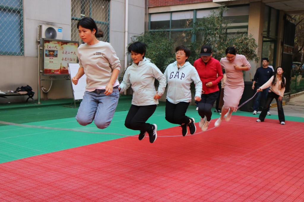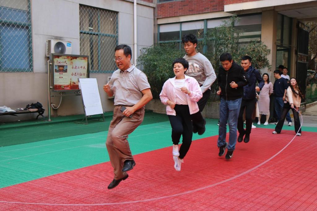 本次活动共有6支队伍参加:应化队、化工队、矿加队、生工队、机关队、实验中心队,每队7名队员,2人负责摇绳,5人跳绳。活动沉浸在一片欢呼声和喝彩声中,老师们互相提醒,互相加油,尽情享受着跳绳带来的乐趣,现场气氛十分欢腾。比赛中,各支队伍全神贯注,紧盯局势,努力把握最适合的节奏,队员们像一个个跳动的音符,在线谱上来回穿梭,演奏着一曲动人的运动之歌。经过一番激烈的比拼,应化队凭借娴熟的技巧与默契的配合夺得本次跳大绳比赛的冠军。