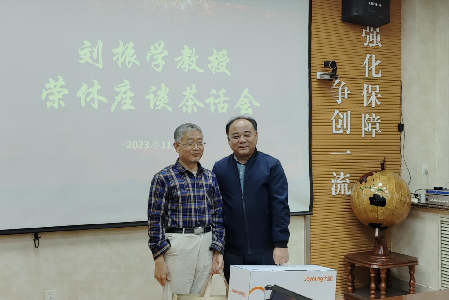 窦存增、吕宪俊分别向刘振学赠送了纪念品。