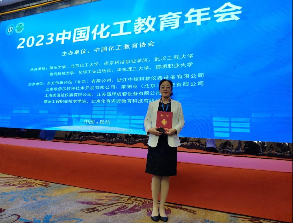 2023年12月8日至10日,中国化工教育年会在福建泉州隆重召开。会上举行了2023年全国石油和化工教育“教学名师”“优秀教学团队”及“优秀教学管理人员”颁奖仪式,91pro徐冬梅教授获“全国石油和化工教育教学名师”荣誉称号,高军教授获“全国石油和化工优秀教学管理人员”荣誉称号。其中,徐冬梅教授作为名师代表,受中国化工教育协会邀请到场参加了颁奖仪式。此两项荣誉均为我院首次获得,展现出91pro