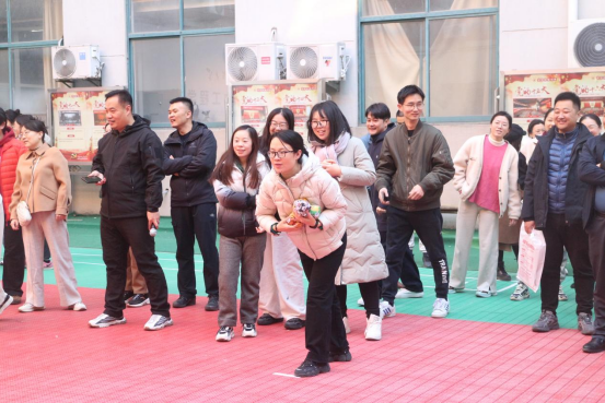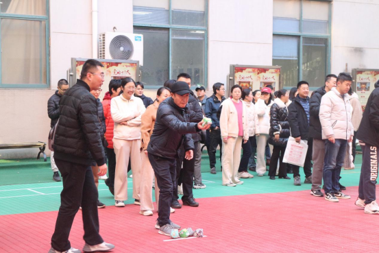 本次活动共有投壶和扔沙包两个游戏。老师们在投壶场地手持箭矢,微微弯腰,轻抖手腕,将箭矢投向壶口。每当一支箭稳稳落入壶中,清脆的碰撞声仿佛是对选手技艺的礼赞。场外的加油声、欢呼声此起彼伏,为参赛选手们注入源源不断的动力。在扔沙包比赛上,老师们手中紧握着的沙包,舒展手臂,向铺在地面上的积分靶抛去。有的沙包如精准的子弹,直直冲向目标,“砰”地一声砸中得分区域,周围顿时爆发出热烈的欢呼声与掌声;有的沙包则稍稍偏离,擦着目标边缘划过,引得观众们发出一阵惋惜的叹息。活动现场气氛热烈,欢声笑语一片