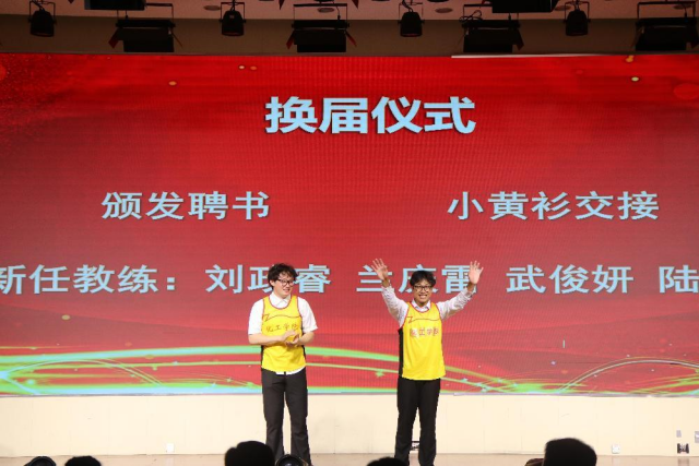 在田径队换届仪式上,田为新任田径队教练刘政睿兰庆雷武俊妍陆星宇颁发聘书。老教练毕岳洋和新教练刘政睿进行了小黄衫交接仪式。毕岳洋在赛季总结发言中深情回顾了田径队这一年的辛勤耕耘与丰硕成果,向始终支持队伍发展的师长同窗表达了诚挚谢意,并对新一届田径队再创佳绩寄予厚望。刘政睿在履新致辞中郑重承诺,将以满腔热忱履行教练职责,领田径队开创新的辉煌,矢志传承化工田径的拼搏精神,让小黄衫的荣光在赛场上熠熠生辉,让化工化工谁与争锋的激昂口号响彻云霄。