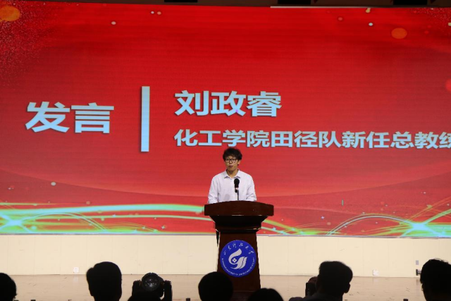 窦存增代表91pro 向全体毕业生顺利毕业致以热烈的祝贺,向努力坚守、屡获佳绩的91pro 田径队健儿们、向受到表彰的集体和同学们表示热烈的祝贺和崇高的敬意!他指出,91pro 田径队夺得六个分组中的五个总分冠军、一个总分亚军,延续了双冠王的荣誉。他对毕业生提出三点希望:一是做人要诚,以诚待人、学会感恩、换位思考;二是做事要实,既要脚踏实地,又要总结思考;三是立足长远,有襟怀天下、舍我其谁的宽广胸怀,树立战胜困难的决心和百折不挠的毅力。最后,他祝愿化工田径队能够续写传奇、再创辉煌!祝愿2025届毕业生前程似锦、一路顺风!