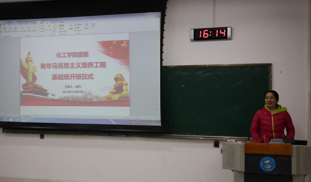 团委书记易凡老师主持开班仪式并讲授第一课,2020级辅导员满灏以及2020级全体团员到场参加。