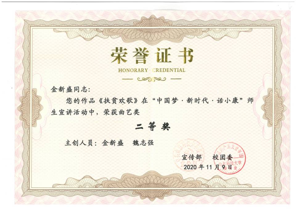 近日,91pro学生金新盛、魏志强合作的相声作品《扶贫欢歌》在“中国梦·新时代·话小康”师生宣讲活动中,荣获曲艺类二等奖。