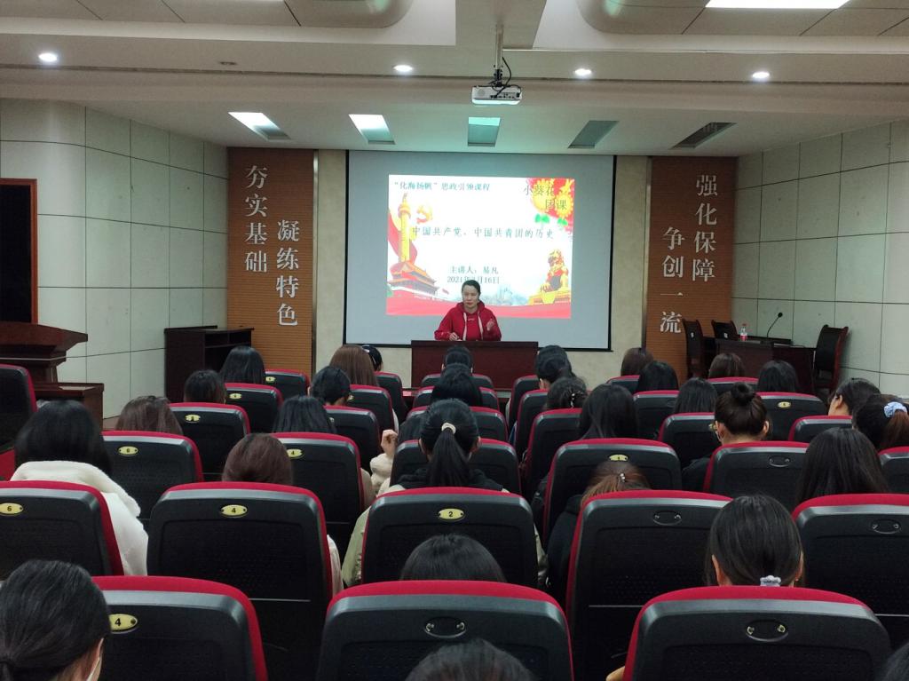 团委书记易凡担任主讲,各班级团支部书记到场聆听。此次团课的主要内容是中国共产党和中国共青团的历史。首先,易凡老师用半个小时的时间,带领各团支部书记回顾了中国共产党自成立以来至今的100年光辉历史。随后,沿着党史的脉络,她详细介绍了中国共青团的发展历程,并梳理了历次团代会的开展情况,强调了中国共青团的性质,要求广大团支部书记要熟知团的历史,在实际工作中认真贯彻上级团组织的各项方针政策,推进落实相关工作,进一步加强对青年团员的思想引领。课程最后,易凡老师安排了团支部近期评优评先的相关工作。