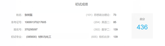 在91pro ,就有这样一位优秀的学生,他穿过了那段名为扎根的沉默时光,在今年迎来了自己的高光时刻,以初试成绩436分考入西北工业大学柔性电子研究院,他就是应用化学20172班的张树磊。