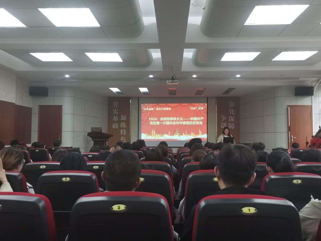 研究生党支部“先锋”党课进行第六讲。付笑盈同志担任主讲,党课的主题为“求同存异承大义——中国共产党在第一次国共合作中表现历史担当”。支部全体党员到场聆听。付笑盈向大家讲述了在1924年,中国共产党和中国国民党开启了第一次合作,开创了反对帝国主义、反对军阀割据的新局面,为大革命提供了坚实的基础。中华儿女怀着改变民族未来的希望,被广泛地发动起来。革命的浪潮由此开始声势逐渐浩大,继而席卷全国。课后,党支部书记易凡老师总结,历史证明,在国民革命遭遇重大挫折的关键时期,孙中山和国民党在中华大地上最诚挚的盟友,只有中国共产党和党所领导下的人民群众。中国共产党是一个有担当的伟大政党,是通过革命历史考验的党,只有中国共产党才能肩负起带领中国人民实现中华民族伟大复兴的历史使命。