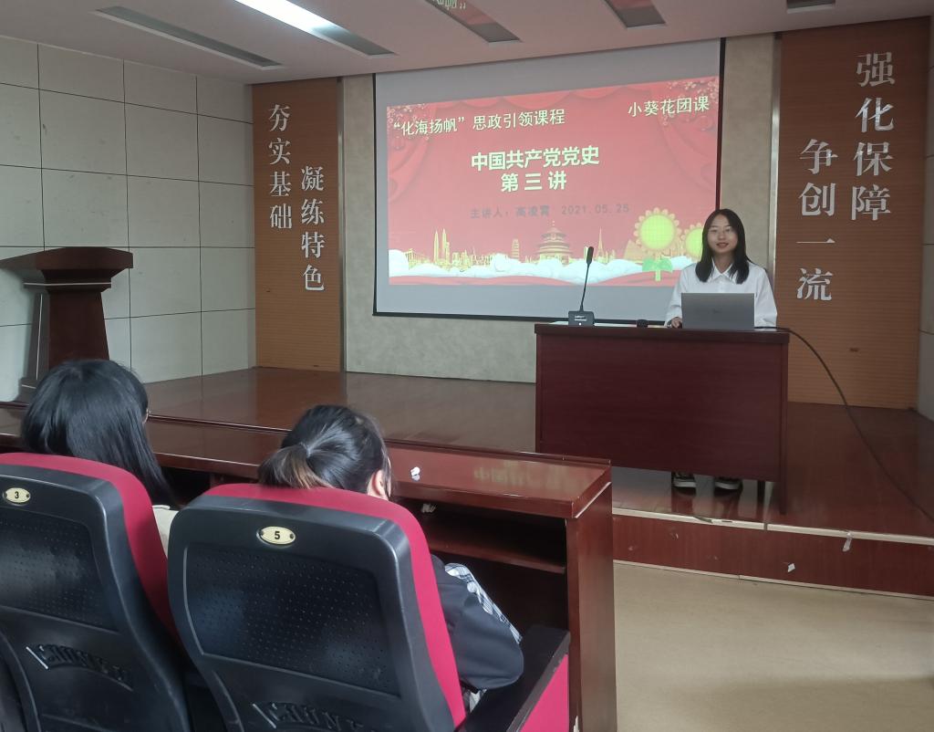 团委书记易凡主持,各班级团支部书记到场聆听。两位主讲分别围绕1922、1923年的党史展开了讲解。其中,高凌霄讲述了1922年的党史,她介绍道,在创建初期,党的建设的迫切任务是建立健全党的组织机构,发展壮大党的队伍。短短一年的时间,年轻的中国共产党茁壮成长,发展和扩大了许多地方组织,给中国革命带来新的希望;王静维讲述的是1923年的党史,她讲道,党的二大是中国近代历史上第一次明确提出彻底反帝反封建的民主革命纲领,“打倒列强,除军阀”成为各族人民的共同呼声。中国共产党以中国工人阶级先锋队和中国人民根本利益代表者的面貌,组织和掀起工人运动的高潮,发动和领导农民运动、青年运动、妇女运动,很快开创出中国革命的新局面。课程结束后,团委书记易凡对两位团支书的课程进行了逐一点评,并强调,作为团支书,要坚定共产主义信念,发扬红色传统,延续共产党人的精神血脉,在广大团员中起到先锋模范的榜样作用,在各项工作中争当表率。