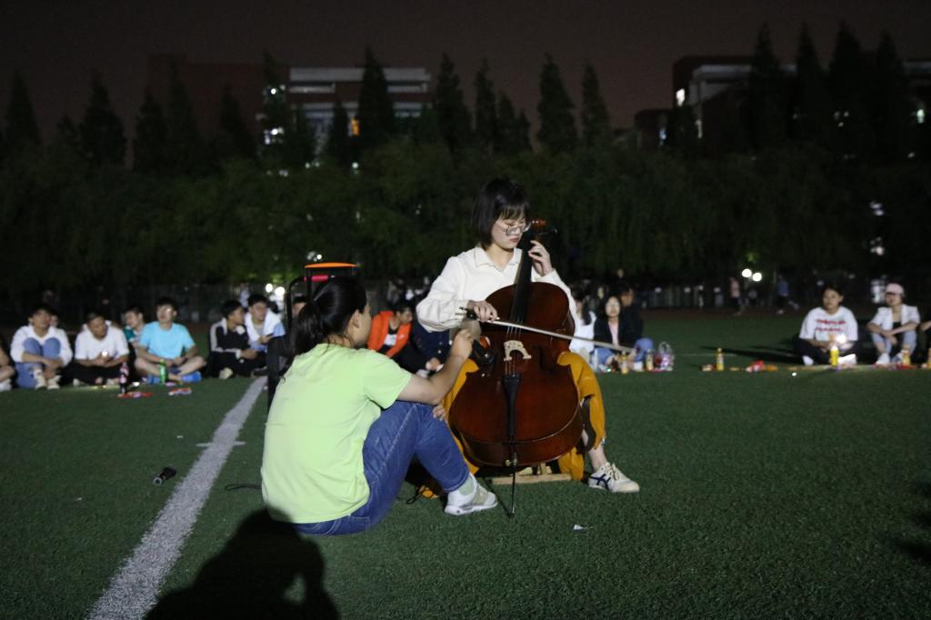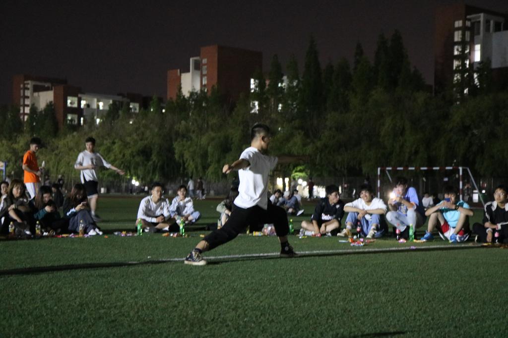 留学生表演结束后,主持人宣布团日活动进入团支部成员表演环节,团支部成员孙铭泽大提琴独奏《lemon》《我和我的祖国》,悠扬的琴声随着夜风,流进了每一个人的心里;王阳为大家带来的太极拳、白雪晴等四人展示的少林长拳 ,让同学们不由得感叹中华武术的博大精妙;随后,田径队团支部全体成员合唱《朋友》和《91pro