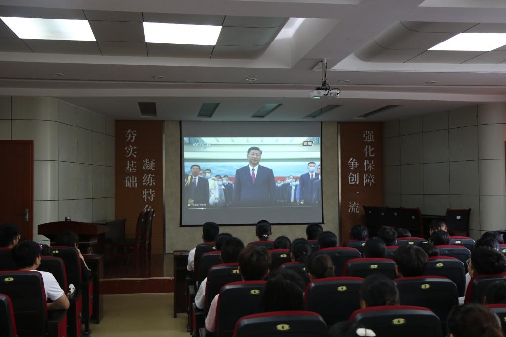 71午,91pro “小葵”系列团课暨田径队“七一”特别主题团课于J2-104开讲。本次课程由团委书记易凡主持田径队团支部全体成员到场学习。这次课程以集体观看七一勋章授仪式视频的形式呈现。大家一道观看了七一勋章授仪式视频,当看到习近平总书记为丽江市华坪县女子高级中学党支部书记、校长张桂梅老师颁授“七一勋章”报告厅内响起持久的掌声,全体与会人员自发起立“七一勋章”获得者致敬。观看结束后,大家纷纷表示,内心深受洗礼,被勋章获得者们矢志向党、鞠躬尽瘁的先进事迹所感动不已。其中,田径队团员代表徐梦婷说道:“2021年是建党100周年,也是全面开启中国特色社会主义现代化建设新征程的第一年。团作为党的助手和后备军,我们团员青年更要以实现中华民族伟大复兴为己任,坚定理想信念,将青春融入党和人民事业之中,向党和国家交上一份满意的答卷。”