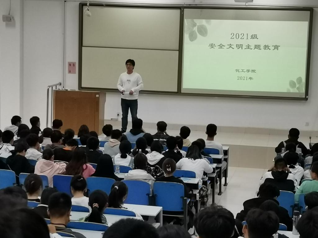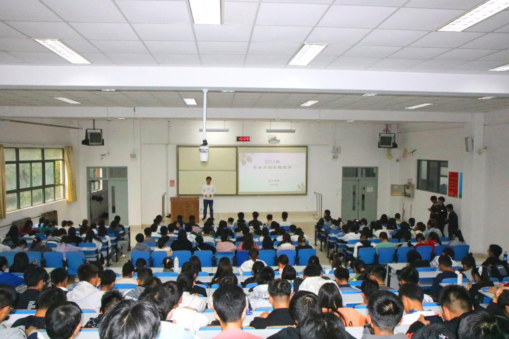 于10月15日召开2021级安全文明主题教育会议,辅导员王大鹏及2021级全体学生参加会议。