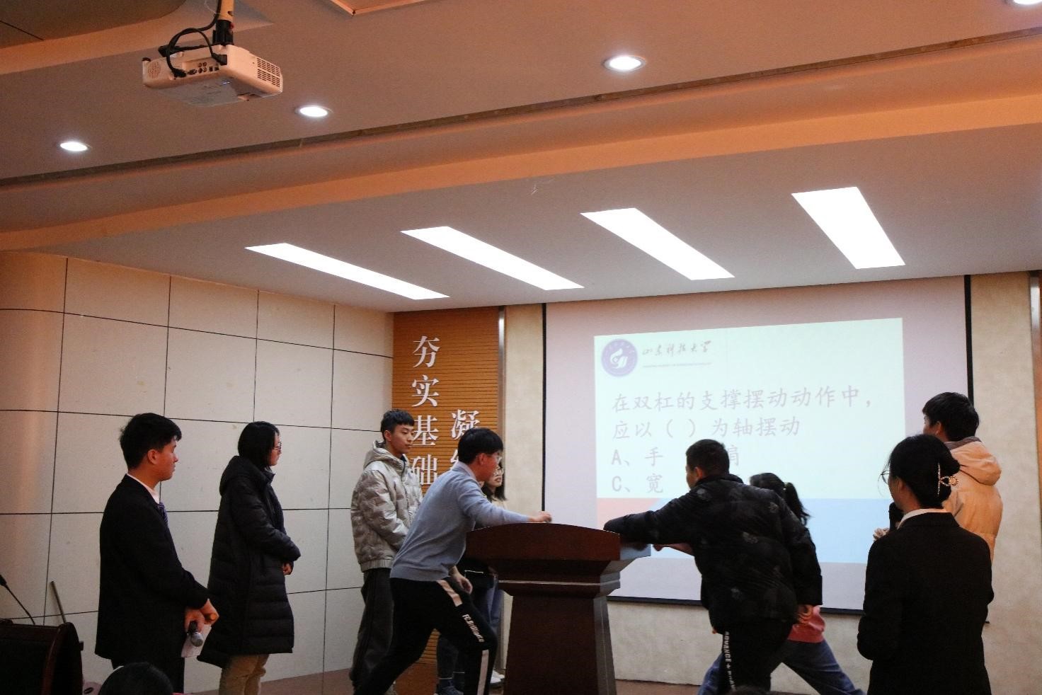 此次比赛分初赛和决赛两个赛段。经过初赛线上比拼,最终有10名同学闯入决赛。决赛中,选手们依次上台作答,机敏的反应、流利的回答展现出同学们丰富的体育知识储备,也让台下的观众学习到了很多有用的体育知识。在观众互动环节中,同学们踊跃参与,争相答题,进一步活跃了比赛氛围。最后的选手抢答环节中,各位选手才思敏捷,积极答题,比分胶着,将比赛推向了高潮。
