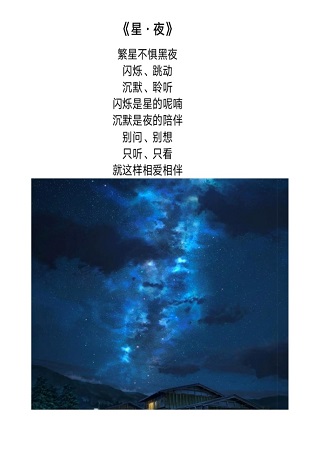 本次活动以“诗歌传情”为写作主题,同时开放线上线下两个渠道收集参赛作品。参赛同学们通过将自身真切、真实、真诚的生活体验与合理的想象结合起来,以自己真挚的情感创作出一首首优美的诗歌,不仅丰富了同学们的校园文化生活,更激发了同学们热爱诗歌的那份激情。通过网络投票等环节,八位同学的作品脱颖而出,荣获嘉奖,他们分别是: