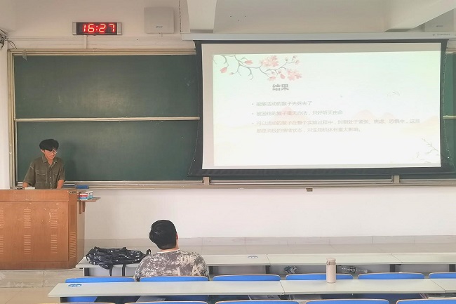 丁国洋围绕“大学生情绪管理”这一主题,以适当调整并管理好情绪对成功具有重要作用为切入点,围绕情绪概述、大学生情绪特点及其影响,以及大学生常见的情绪困扰和不良情绪的调适这四个方面为同学们明确了大学生情绪管理的重要性。其中,通过情绪概述部分两个饶有趣味的心理小测试,同学们的积极性被充分调动起来,现场氛围良好,同学们受益匪浅。