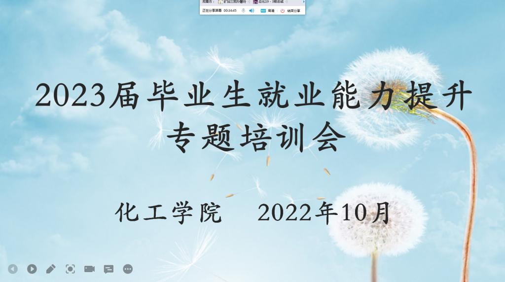 于10月9日采用线上会议的方式举办了2023届毕业生就业能力提升专题培训会,旨在帮助毕业生们更加清楚正确地认识到当前的就业形势,更加深刻地了解就业,同时,帮助同学们解决就业过程中的疑惑,规划未来发展方向。本次专题培训会由毕业生辅导员李玲玲主讲,2023届全体毕业生参加。