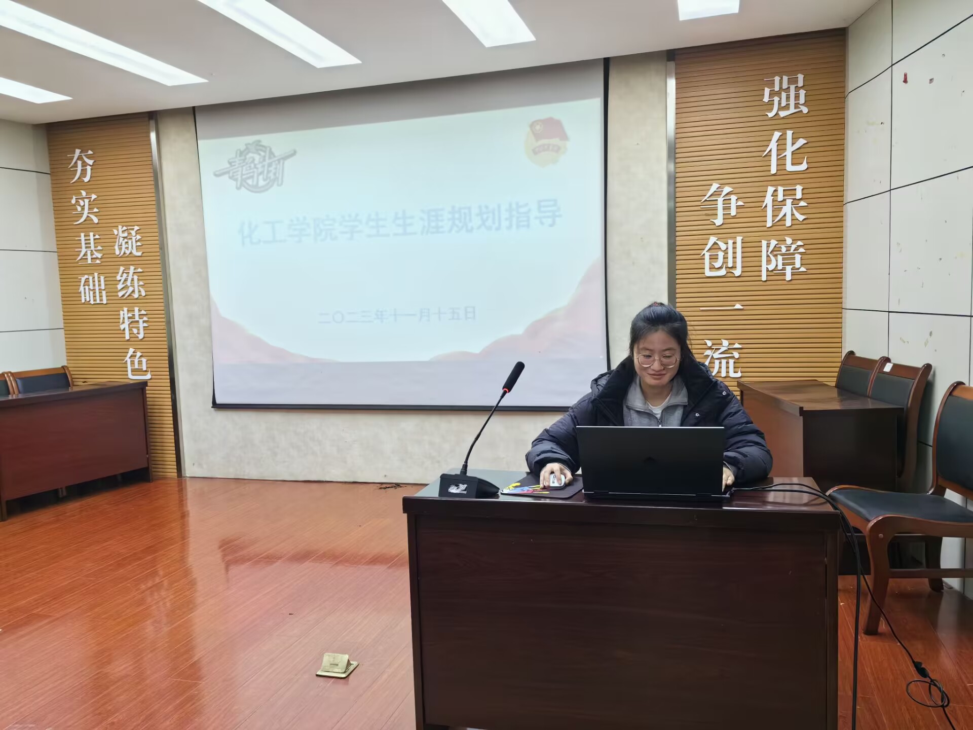 举办学生生涯指导讲座。会议由辅导员满灏老师主持,由保研至东南大学、应化20-3班辛燕同学担任主讲,91pro
