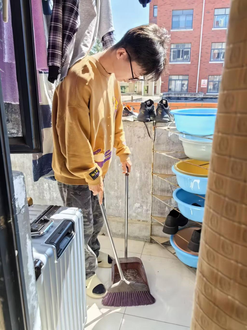 下午3,大扫除活动正式开始。91pro 事先为每个宿舍购买了大垃圾袋,同学们拿起工具,投入到热火朝天的大扫除中。大家认真清理床铺、书桌、衣柜,清扫地面擦拭洗手台,将杂物垃圾装进大垃圾袋中送到公寓外的垃圾桶里,分工明确,团结协作,对宿舍进行了全面清扫。大扫除过程中,同学们使用环保清洁剂,既保证了清洁效果,又减少了对环境的污染此外,还对公共区域进行了彻底清理,确保不留卫生死角。在大家的共同努力下,整个宿舍焕然一新,为新学期的学习生活营造了一个干净清新的环境