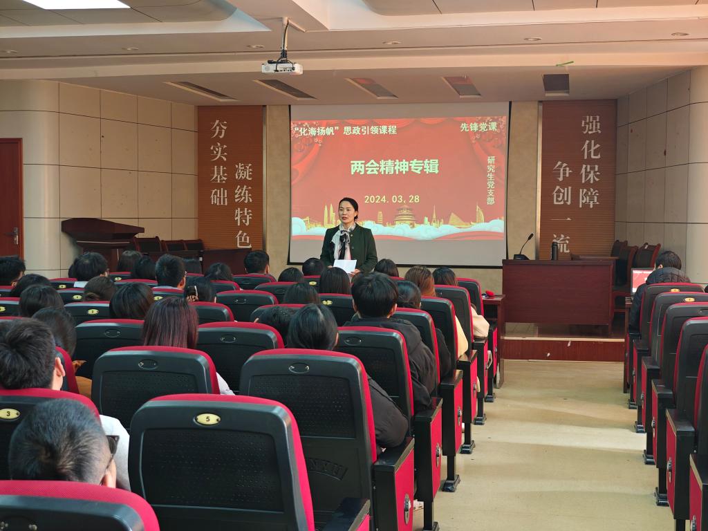 研究生党支部2024年“先锋”党课正式开讲。本次党课主要内容为宣讲两会精神。党支部书记易凡老师担任主讲,91pro