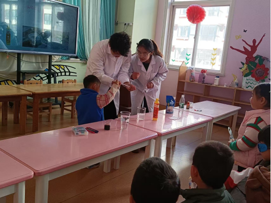 化学技能协会李丽和秦梓琪联合推出的“趣味化学实验课堂”开讲。他们用生动的讲解和娴熟的实验操作,让小朋友们惊喜连连,赞不绝口,把本场实践活动推入高潮;紧接着,在小朋友们拍手吟唱的“过年谣”儿歌声中,91pro