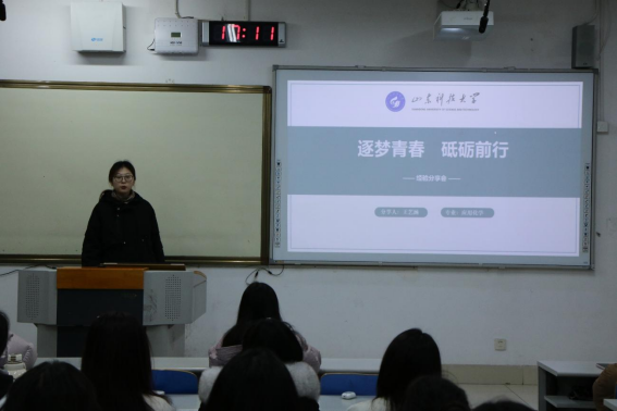 在J1-108举办了“聚合英才,榜样领航”宣讲活动第一讲——“逐梦青春,砥砺前行”,此次分享会由应用化学21-1班团支书王艺涵作为分享嘉宾。