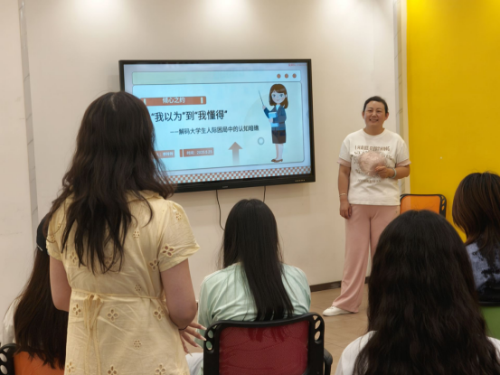 李老师以《从“我以为”到“我懂得”——解码大学生人际困局中的认知暗礁》为主题,结合身边实例,深入浅出地剖析了投射效应等认知偏差在人际交往中的作用及影响。她指出,人们常常会不自觉地将自身的想法、情感投射到他人身上,可能导致对他人的误解,影响人际关系和谐发展。活动中,李老师分享了许多人际交往的实用技巧,帮助同学们识别和避免认知偏差带来的负面影响。
