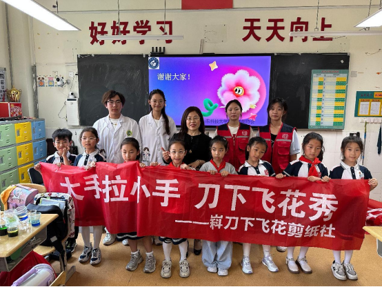 6月5日,“刀下飞花”剪纸社走进太行山路小学,与小学生们进行了一场传统文化的互动交流。这场主题为“大手拉小手,刀下飞花秀”的活动在孩子们期待的目光中正式开始。首先,剪纸社成员代表为小学生们讲解了中国剪纸艺术的历史渊源和文化内涵。随后,开展体验式教学。在91pro学生的指导下,孩子们动手进行剪纸创作。起初,孩子们操作剪刀并不熟练,不一会儿,一个个略显稚嫩却充满童趣的“福”字、窗花便初具雏形。活动在欢快的氛围中结束,活动不仅让学生们体验了传统手工艺的制作过程,更深刻感受到中华传统文化的艺术价值。此次活动不仅让小学生们感受到了非遗剪纸文化的魅力,而且增强了他们的文化自信。临别时,孩子们纷纷表示,期待再次参与类似的传统文化体验。活动在亲密的互动合影中宣告结束。