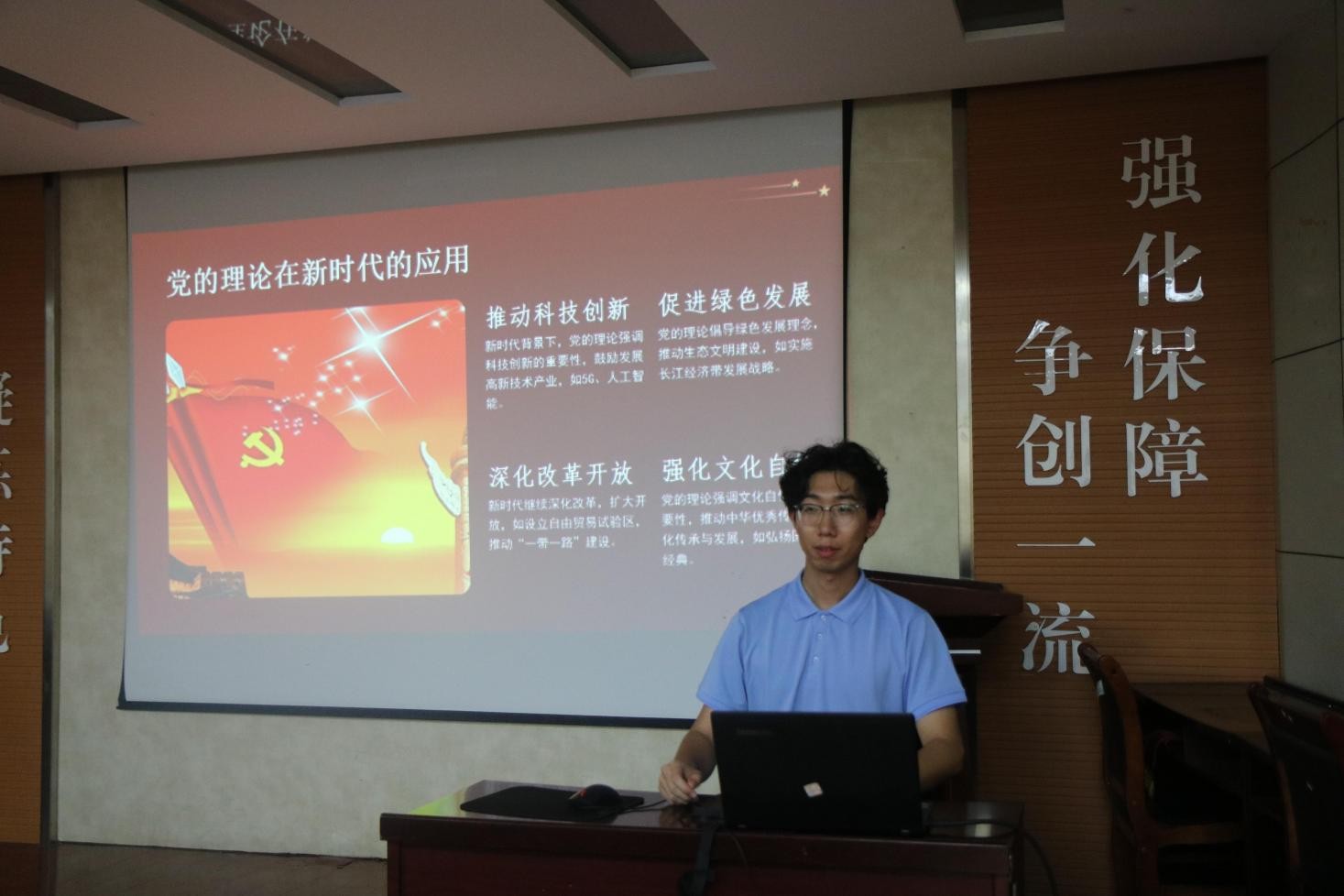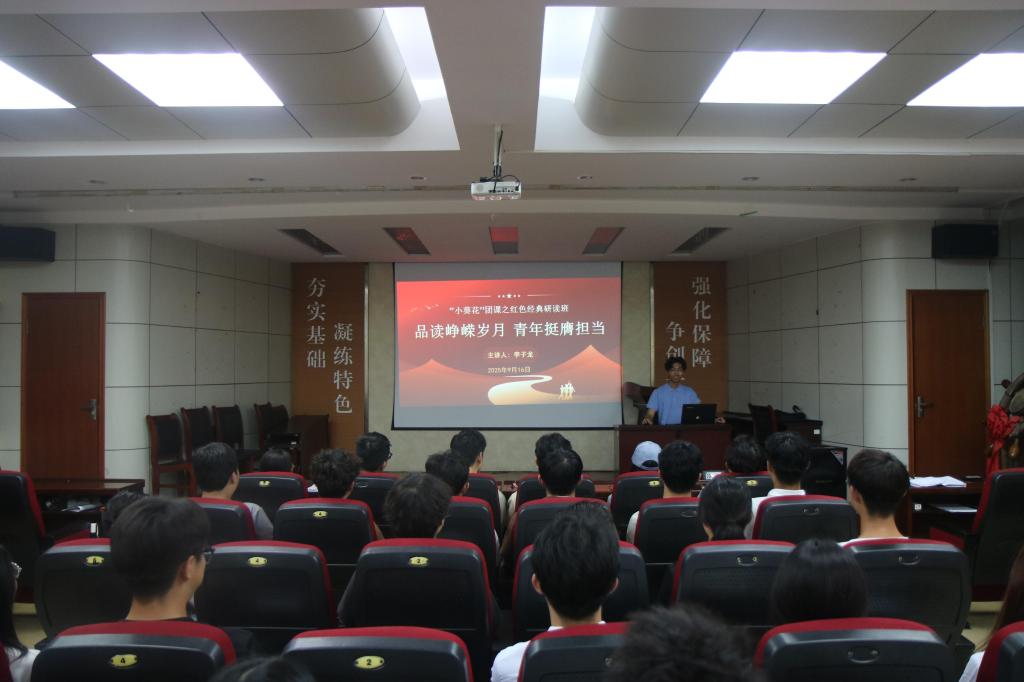 “小葵花”团课之红色经典研读班在J2-104开班进行第一讲,此次课程的主题是“品读峥嵘岁月,青年挺膺担当”,由“优选计划”辅导员李子龙主讲,学生会全体干事参加课程。