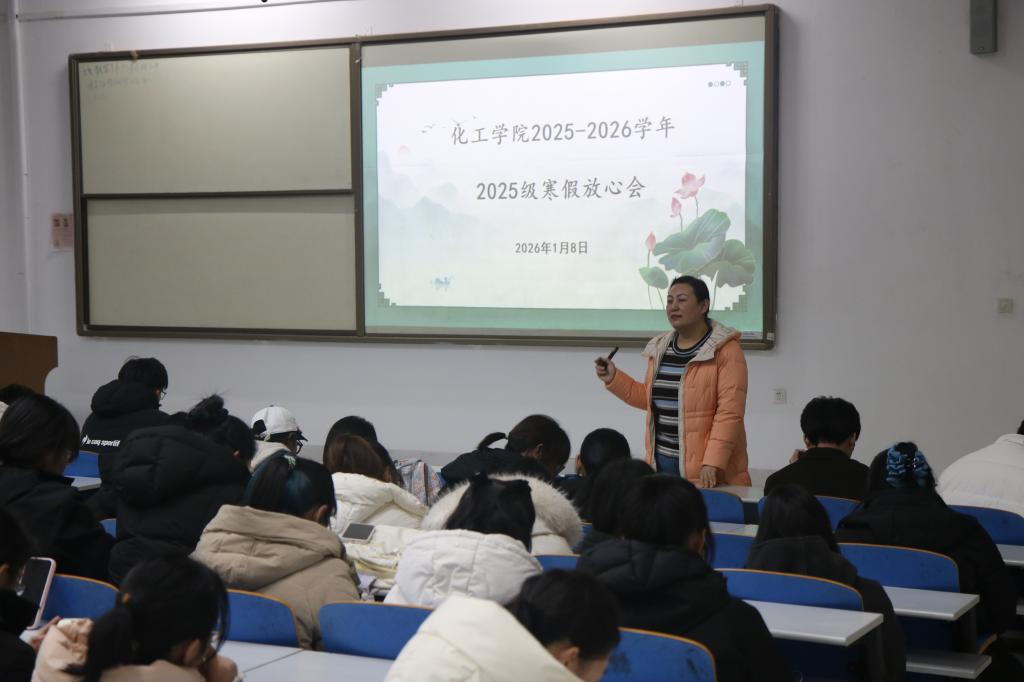 于1月8日召开2025级本科生寒假放心会。本次会议由2025级本科生辅导员李玲玲老师主讲,大一全体学生参加。