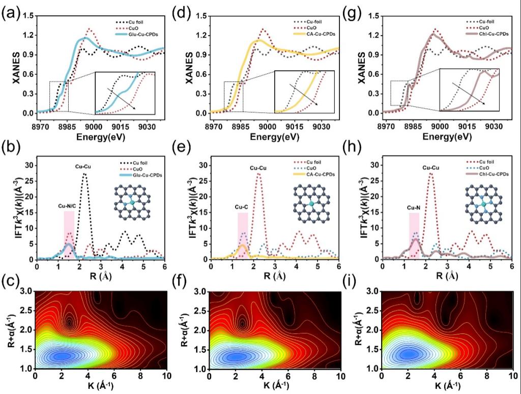 图1. 不同铜掺杂CPDs的Cu位点配位环境解析