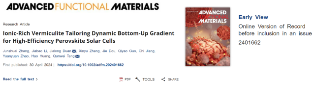 段加龙副教授(学术教授)、唐群委教授等人在全无机钙钛矿太阳电池领域取得最新进展,相关成果以“Ionic-Rich Vermiculite Tailoring Dynamic Bottom-Up Gradient for High-Efficiency Perovskite Solar Cells”为题发表在权威期刊Advanced Functional Materials上(中科院Top一区,影响因子:19.0)。