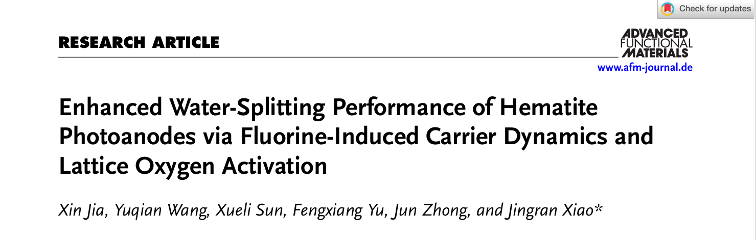 肖静冉等人在Advanced Functional Materials杂志发表氟掺杂提升赤铁矿光阳极性能最新成果