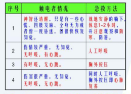 触电1-5分钟内急救救生率90% ;10分钟内急救救生率60% ;超过15分钟急救救生0%