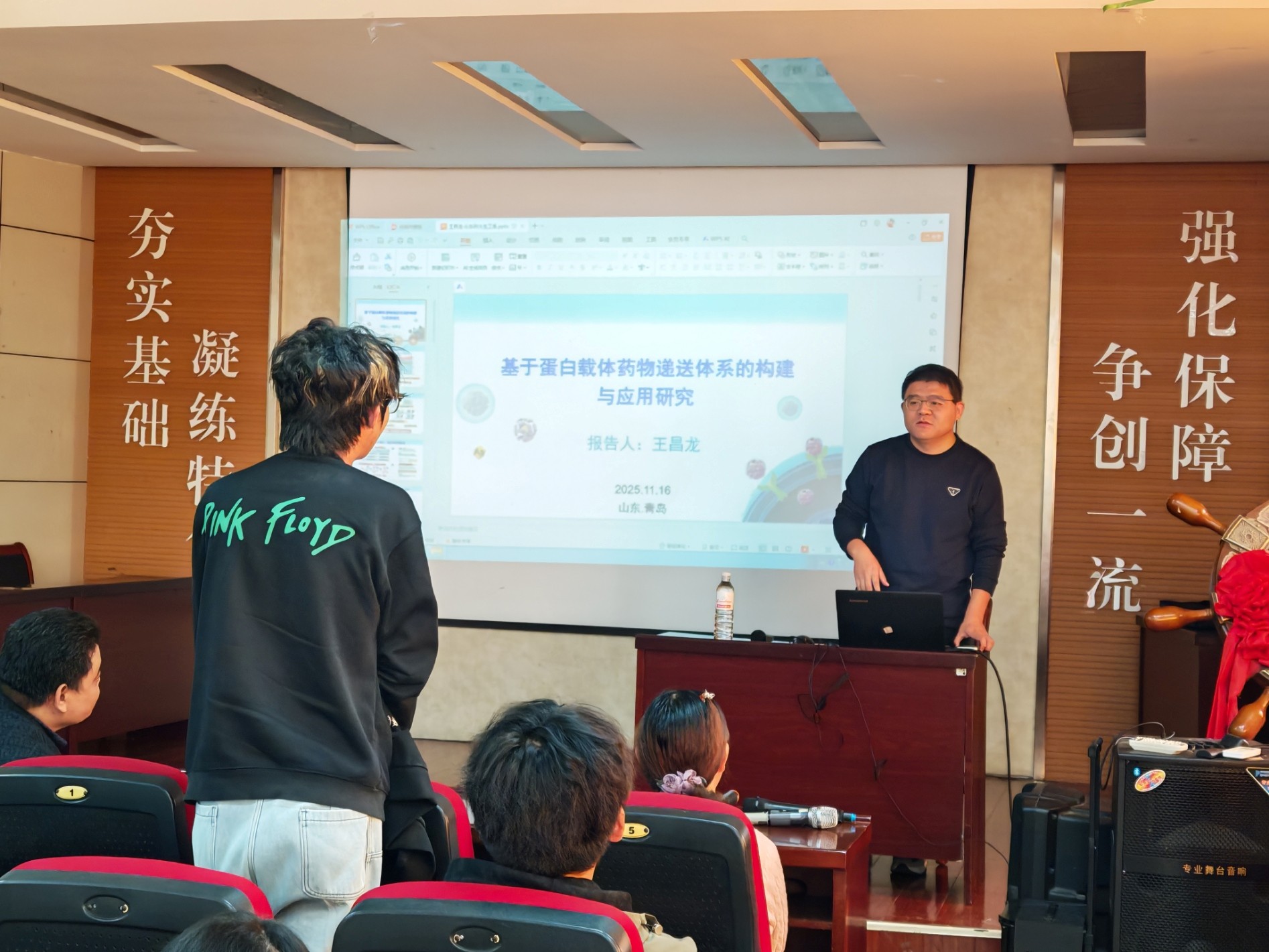 王昌龙教授重返母校倾囊相授,是校友情系母校、反哺育人的生动体现。报告会的成功举办,不仅营造了浓厚的学术氛围,有效拓宽了学生的科研视野,更彰显了学校育人工作的代际传承与卓越成效,为培养新时代生物医药领域的拔尖创新人才奠定了坚实基础。(生物工程系供稿)