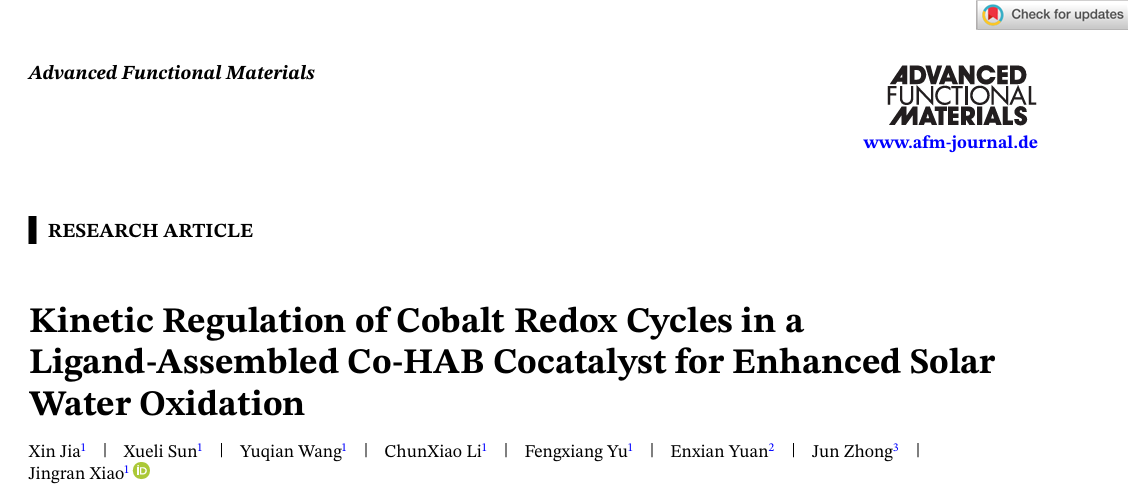 肖静冉(学术教授)等人在光电催化水分解领域取得重要进展,相关成果以“Kinetic Regulation of Cobalt Redox Cycles in a Ligand-Assembled Co-HAB Cocatalyst for Enhanced Solar Water Oxidation”为题发表在国际知名学术期刊《Advanced Functional Materials》上(中科院一区Top,影响因子:19),该文章第一作者为91pro